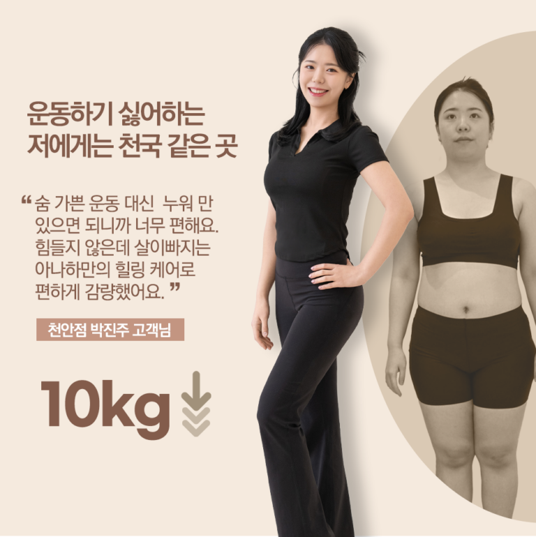Challenger Model 챌린저 모델 아나하가 지향하는 아름다움은 단기간의 숫자 변화가 아닌, 오랫동안 유지되는 균형과 자신감입니다. " 무리한 감량이 아닌,건강한 바디 밸런스 다이어트 " 몸의 균형을 바로잡아 자연스럽고 지속 가능한 변화를 유지하는 아나하 다이어트 모델 WEIGHT LOSS STORY 감량 스토리 잠실본점 Before&After 더보기 강남점 Before&After 더보기 천안점 Before&After 더보기 무리하지 않아도 괜찮아요. 아나하가 있으니까요 나를 위한 다이어트, 아나하에서 시작하세요 상담신청하기